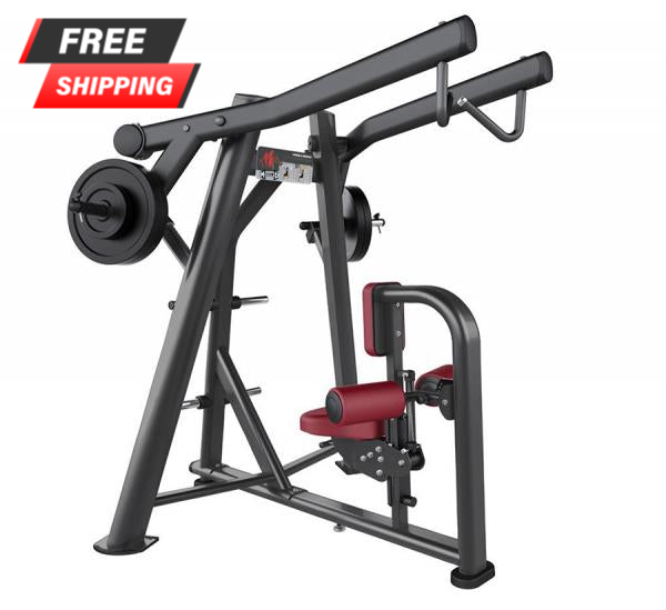 The Elite Leverage High Lat Row has chest, and seat pads as well as angled rollers to stabilize the user’s torso Angled hand grips allow underhand or overhand grips for greater lat muscle isolation and strength development. The iso-lateral arms coupled with the overhead pivot point deliver a smooth for a natural exercise movements with a divergent pathways.